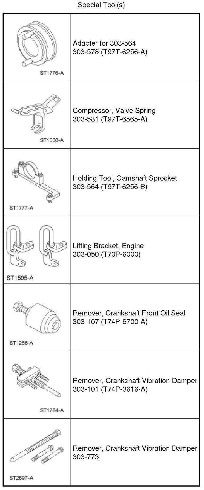 56. Install the Camshaft Sprocket Holding Tool and the Adapter for 303-564 on the LH cylinder head.