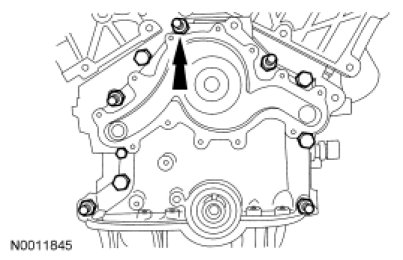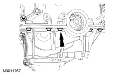 69. Remove the 5 cylinder block cradle-to-engine front cover bolts.