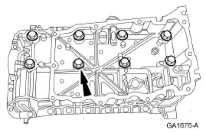 Remove the 8 cylinder block cradle inner bolts. Remove and discard the 2 washer seals.