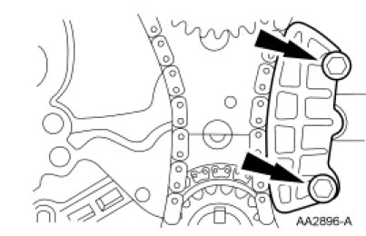94. Remove the 2 bolts and the balance shaft chain guide.