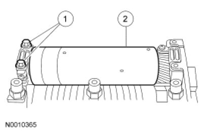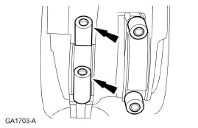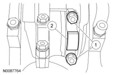 73. NOTE: Note the location of the 2 silver-colored bolts with the washer seals. These bolts must be installed in the same position from which they were removed with new washer seals.