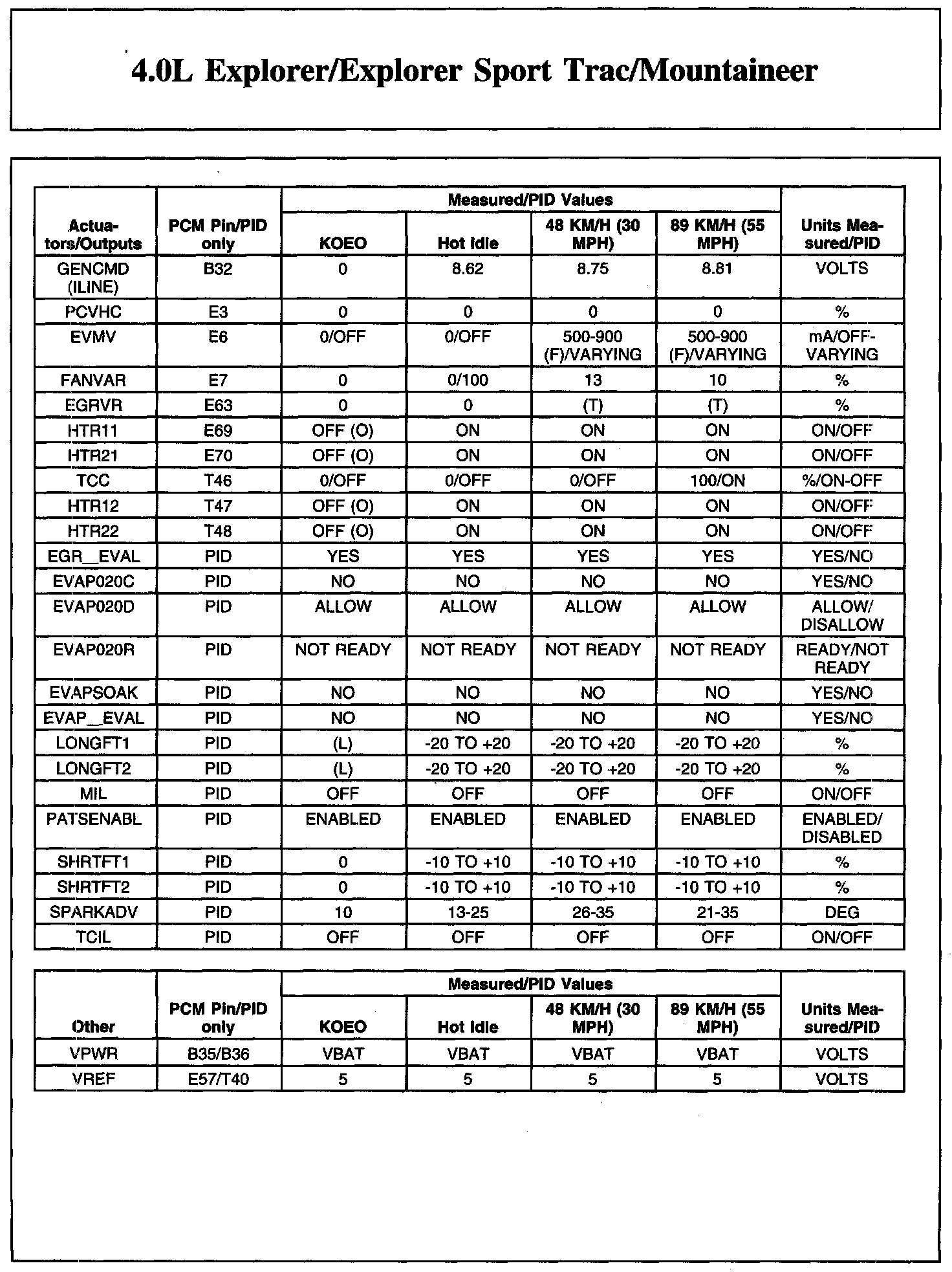 4.0L EXPLORER/EXPLORER SPORT TRAC/MOUNTAINEER