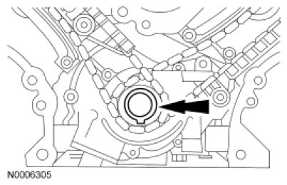 67. NOTICE: Damage to the camshaft phaser sprocket assembly will occur if mishandled or used as a lifting or leveraging device.
