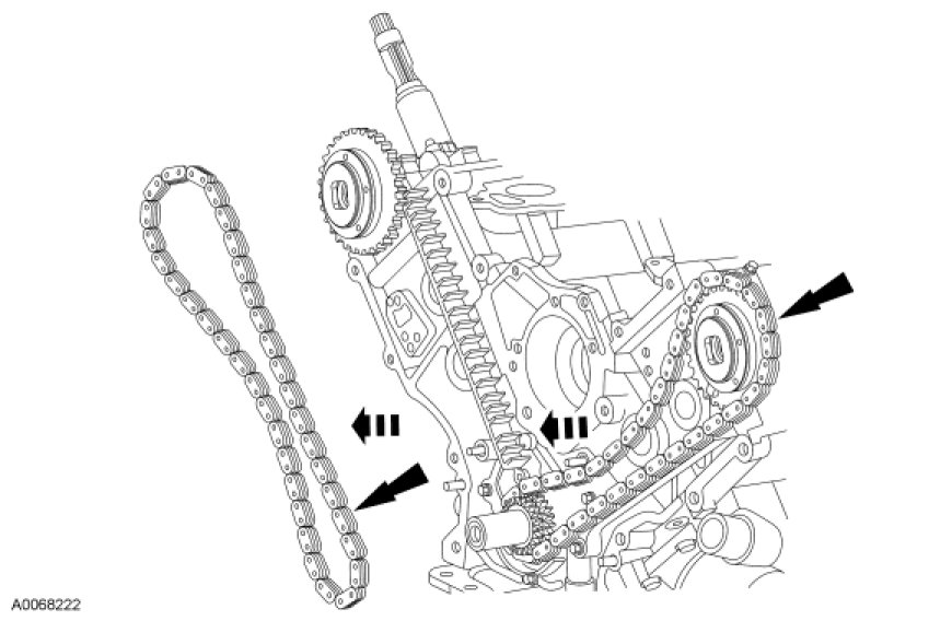64. Remove the RH and LH timing chains and the crankshaft sprocket.