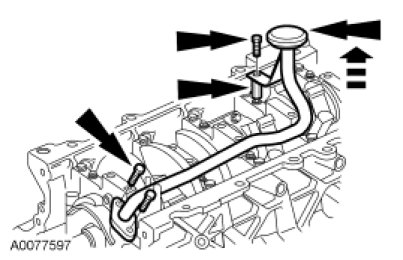 NOTICE: During engine repair procedures, cleanliness is extremely important. Any foreign material, including any material created while cleaning gasket surfaces that enters the oil passages, coolant passages or the oil pan, may cause engine failure.