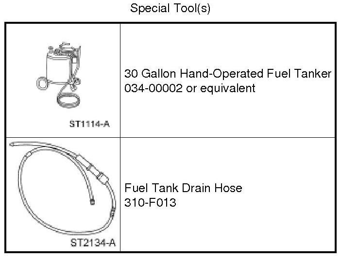 WARNING: When handling fuel, always observe fuel handling precautions and be prepared in the event of fuel spillage. Spilled fuel may be ignited by hot vehicle components or other ignition sources. Failure to follow these instructions may result in serious personal injury.