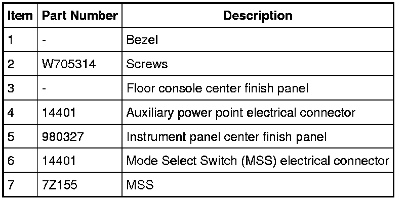 7. Disengage the locking tangs and remove the Mode Select Switch (MSS) from the instrument panel center finish panel.