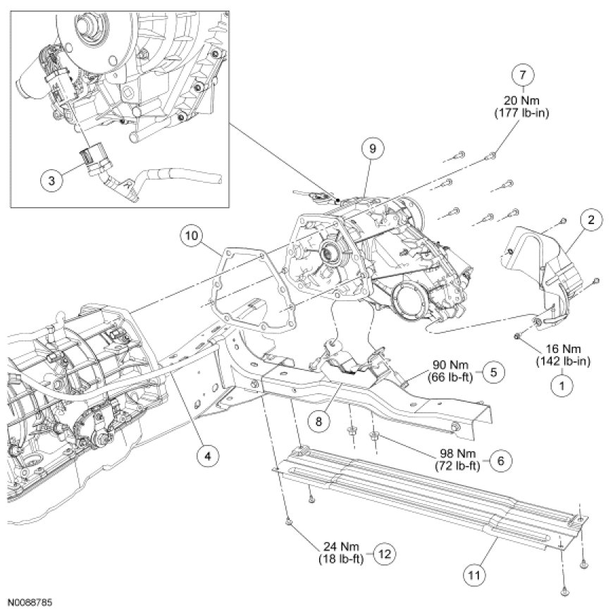 - Tighten to 24 Nm (18 lb-ft).