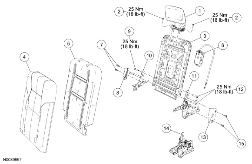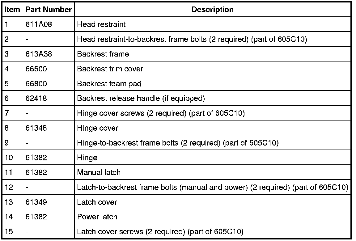 NOTE: RH backrest shown, LH similar.