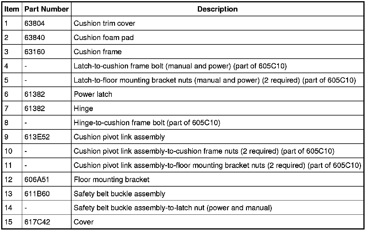 Seat - Exploded View, Third Row