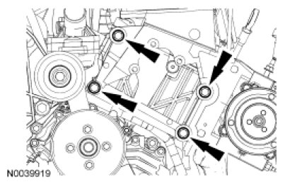7. Remove the 4 bolts and the A/C compressor and power steering pump bracket.
