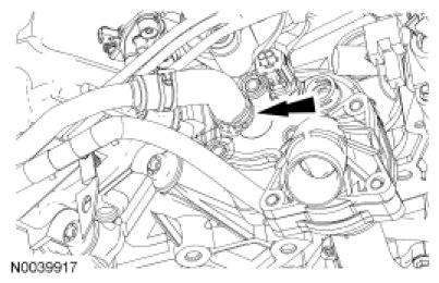 2. Release the bypass hose clamp and remove the thermostat housing.