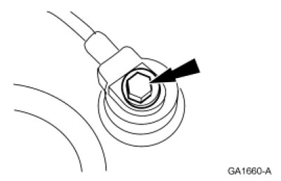 30. Remove the engine wiring harness retainer bolt and remove the engine wiring harness.