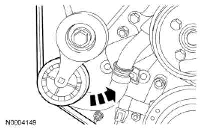 2. If necessary, rotate the accessory drive belt tensioner counterclockwise and remove the accessory drive belt.