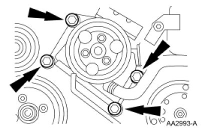 4. If necessary, remove the 4 bolts and position the A/C compressor and power steering pump bracket aside.