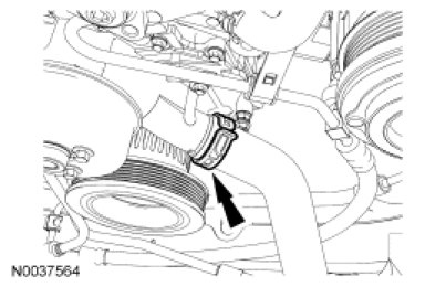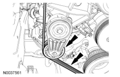 22. Rotate the accessory drive belt counterclockwise and install the accessory drive belt.