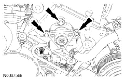17. Position the power steering pump and install the 3 bolts.