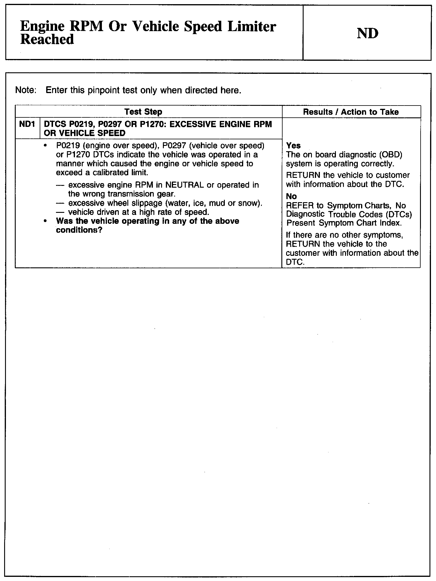 PINPOINT TEST ND: ENGINE RPM OR VEHICLE SPEED LIMITER REACHED