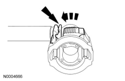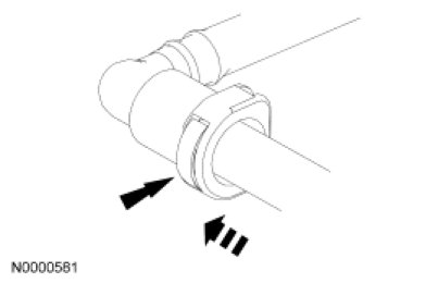 NOTICE: When reusing liquid or vapor tube connectors, make sure to use compressed air to remove any foreign material from the connector retaining clip area before separating from the tube or damage to the tube or connector retaining clip may occur. Apply clean engine oil to the end of the tube before inserting the tube into the connector.