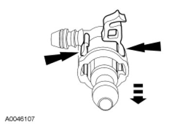 - Press the fuel tube quick connect coupling button and pull the fuel tube to disconnect.