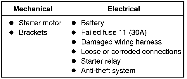 NOTE: When working on the starter system, make sure the anti-theft system is deactivated, if equipped.