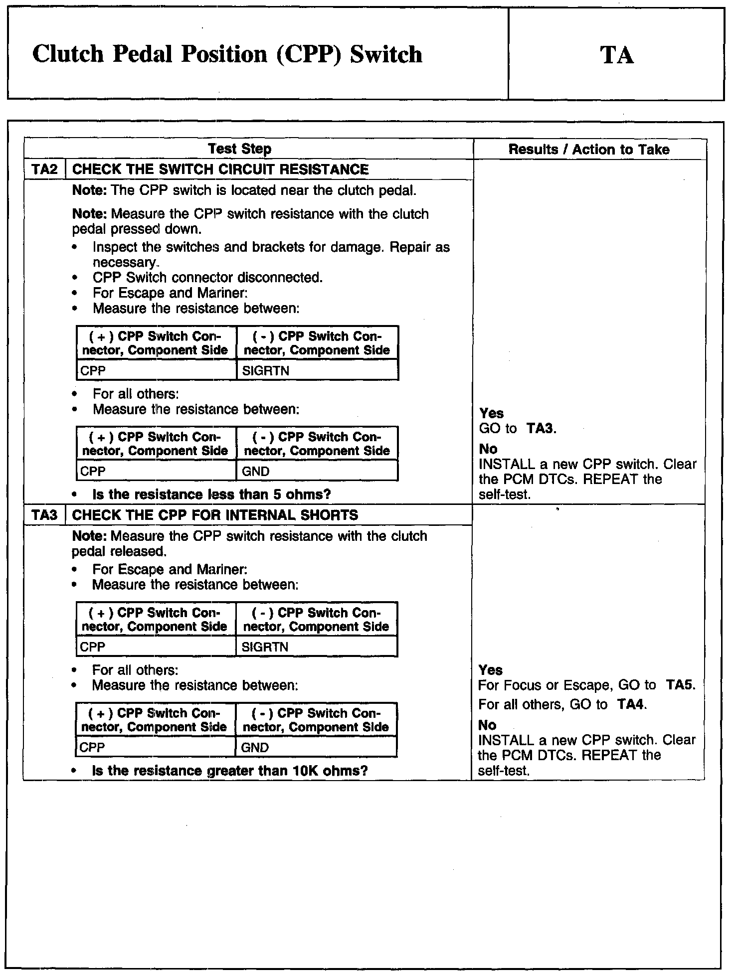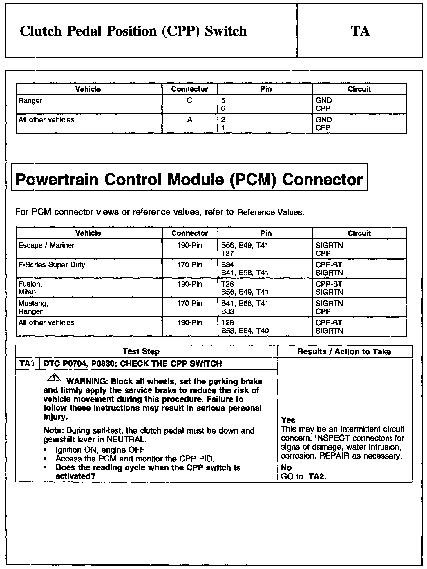 PINPOINT TEST TA: CLUTCH PEDAL POSITION (CPP) SWITCH