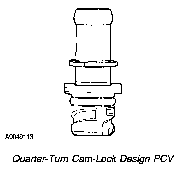 PCV systems that comply with on board diagnostics (OBD) PCV monitoring requirements use a quarter-turn cam-lock thread design at one end to prevent accidental disconnection from the valve cover. For more information about the PCV monitor refer to Positive Crankcase Ventilation (PCV) System Monitor. Positive Crankcase Ventilation (PCV) System Monitor