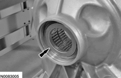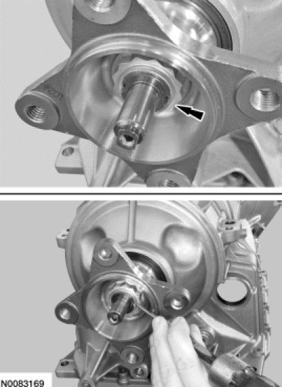 - After installing the new output shaft flange nut, stake the slots to prevent it from coming loose.