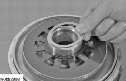 25. NOTE: If the thrust bearing stuck to the back of the center support during removal, remove the thrust bearing from the center support.