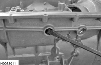45. NOTICE: Use care when installing the Needle Bearing Remover 307-562. Look inside the transmission case to make sure that the Needle Bearing Remover 307-562 contacts the bearing only and not the lip of the case, or damage to the case will occur.