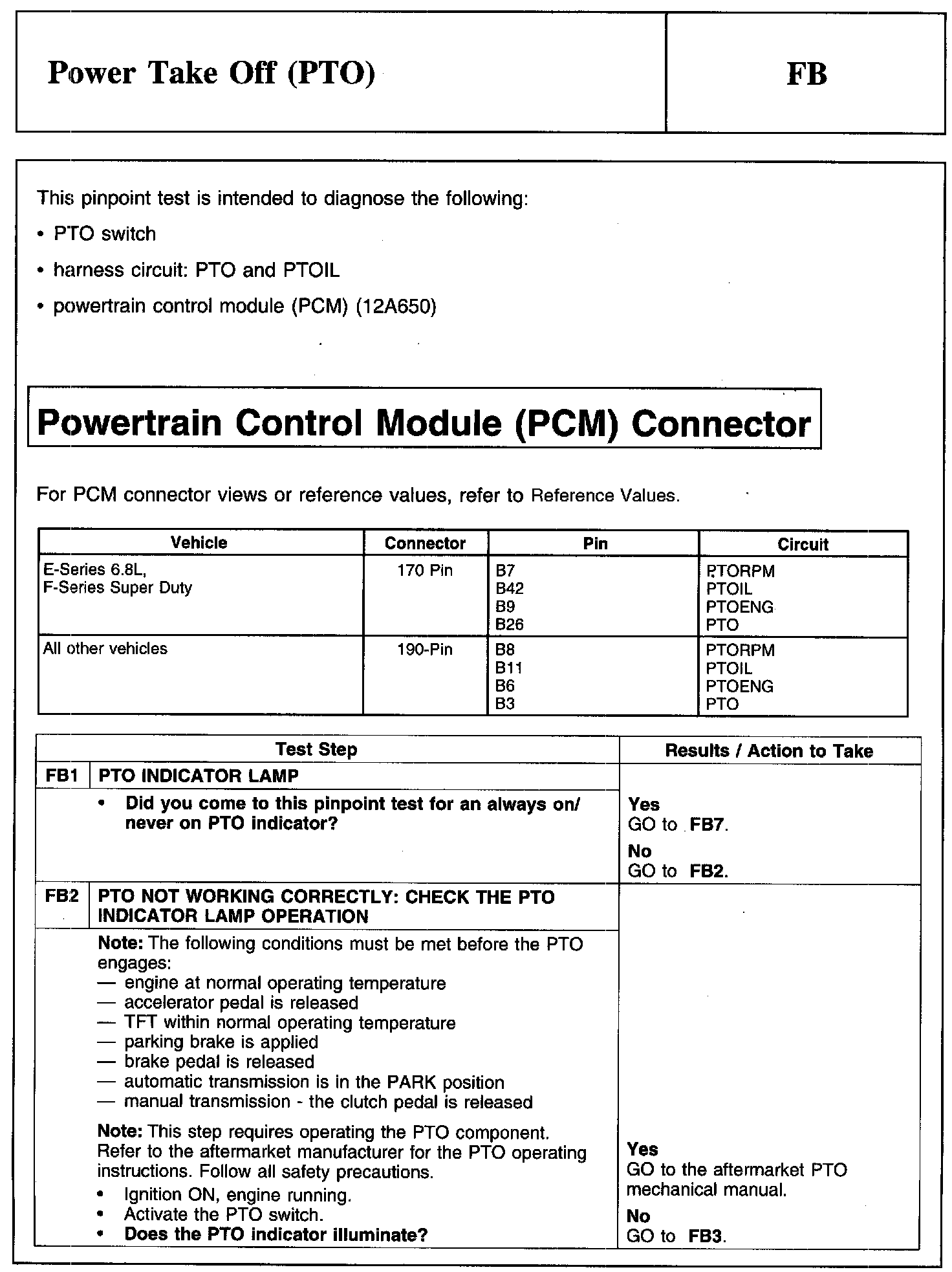 PINPOINT TEST FB: POWER TAKE OFF (PTO)