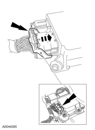 - NOTICE: Do not push the connector to the point where the lever pivots and seats itself. Light pressure is needed to get the connector into position on the Restraints Control Module (RCM), before using the lever to fully seat the connector. Damage to the connector or component may occur.