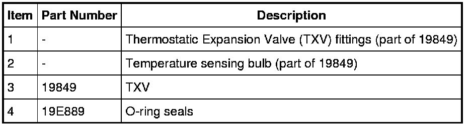 NOTE: An in-line filter is installed in the auxiliary evaporator inlet line at the floorpan bracket connection. A restriction in this filter may cause misdiagnosis of a failed Thermostatic Expansion Valve (TXV). This filter must be inspected before a new TXV is installed.
