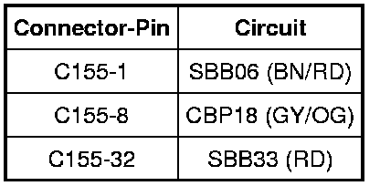 - Measure the resistance between the ABS module C155-16, circuit GD120 (BK/GN), harness side and ground.