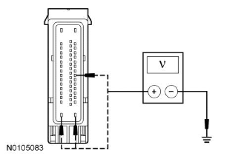 - Measure the voltage between the ABS module, harness side and ground as follows: