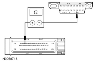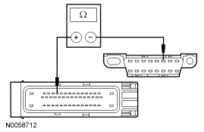 - Measure the resistance between the ABS module C135-12, circuit VDB04 (WH/BU), harness side and the DLC C251-6, circuit VDB04 (WH/BU), harness side.