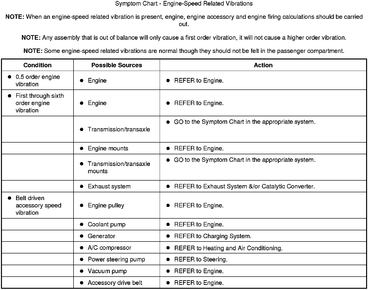 Symptom Chart - Engine-Speed Related Vibrations