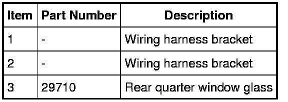 NOTE: Locating tabs need to be cut through in order to remove the rear quarter window glass. The new rear quarter window glass will be equipped with new locating tabs.