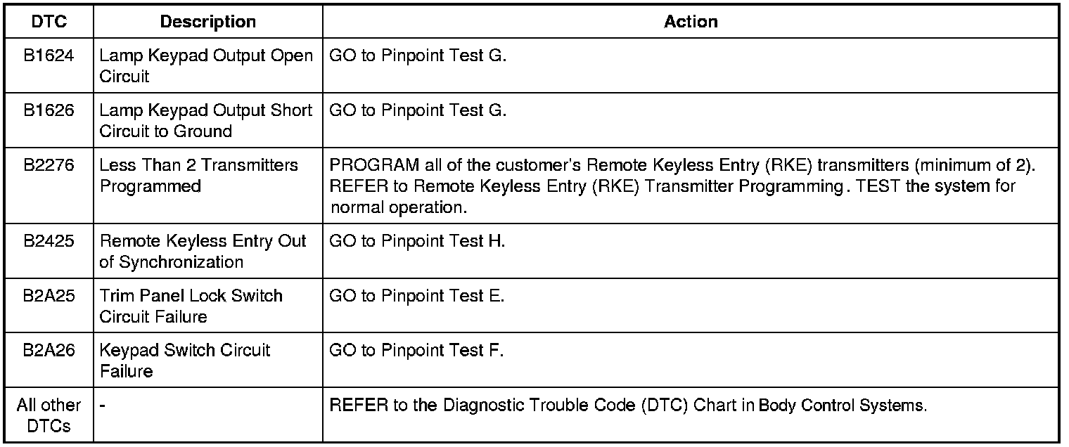Smart Junction Box (SJB) DTC Chart