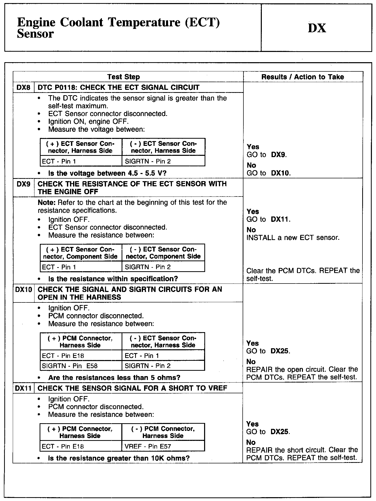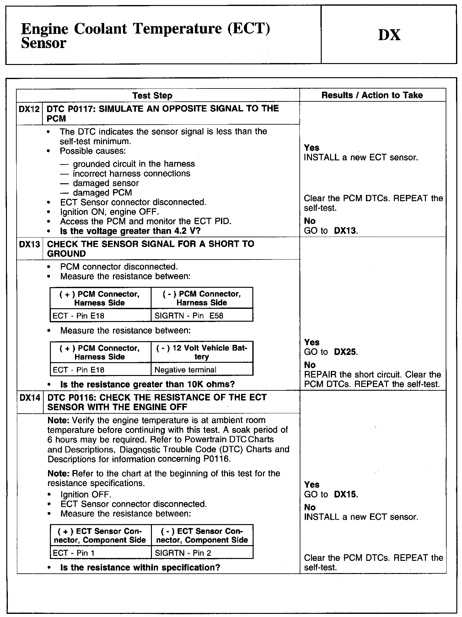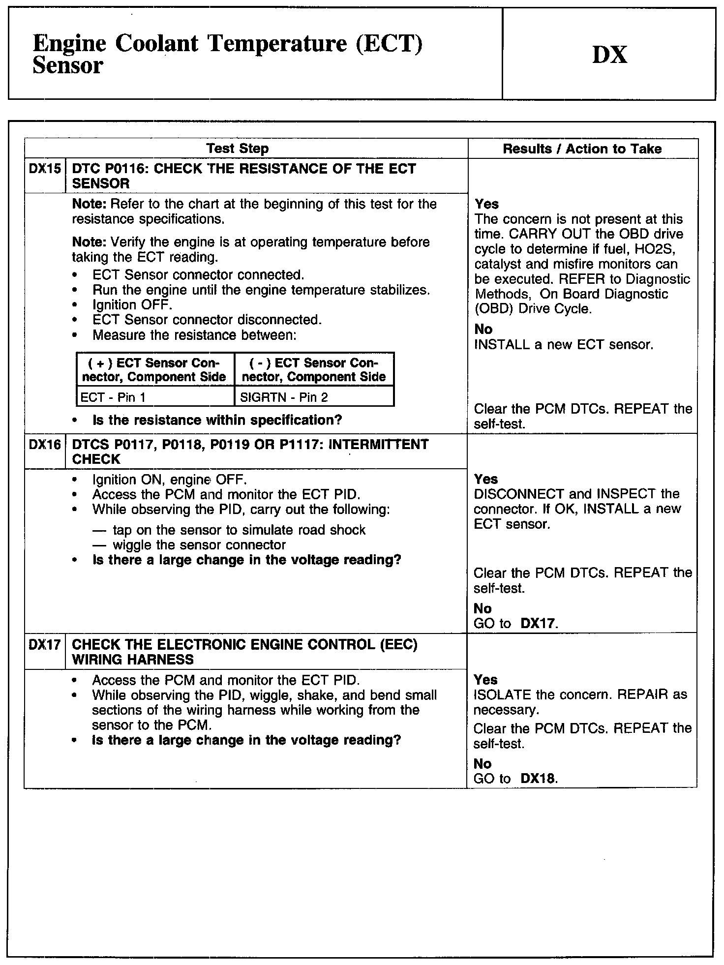 Test DX: Engine Coolant Temperature (ECT) Sensor