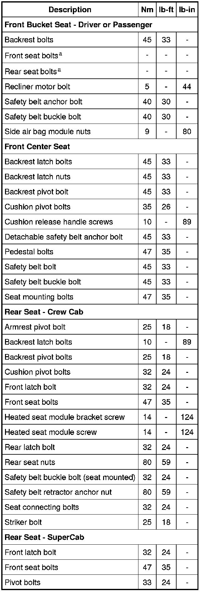 Torque Specifications