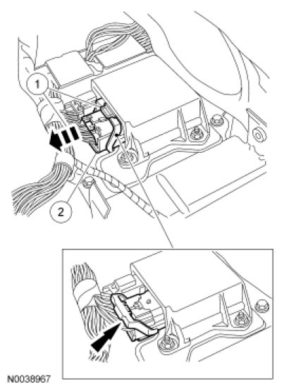 - NOTICE: Do not push the connector on to where the lever pivots and seats itself. Light pressure is needed to get the connector into position on the Restraints Control Module (RCM) before using the lever to fully seat the connector. Failure to follow this instruction may result in component damage and/or system failure.
