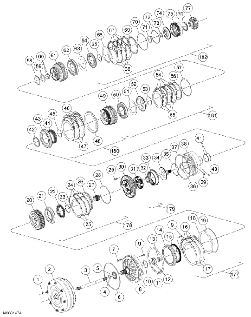 NOTE: Soak all friction clutch plates in transmission fluid.