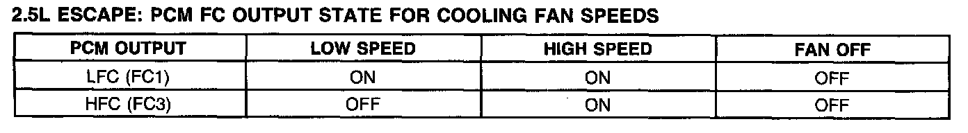 2.5L Escape: PCM FC Output State For Cooling Fan Speeds: