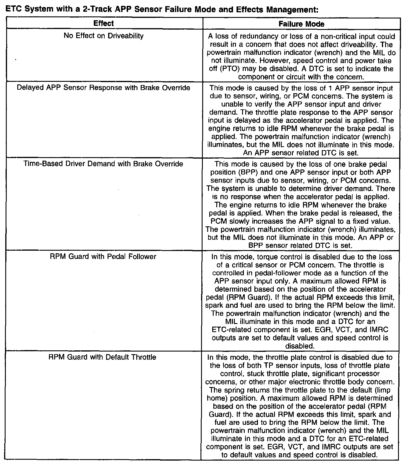ETC System With A 2-Track APP Sensor Failure Mode And Effects Management: