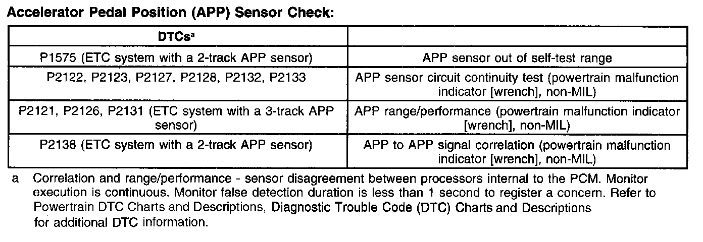 Accelerator Pedal Position (APP) Sensor Check: