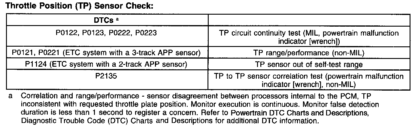 Throttle Position (TP) Sensor Check: