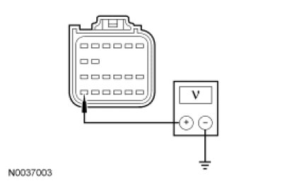 - Measure the voltage between the RCM C310a-24, circuit CBP32 (GN/VT) harness side and ground.