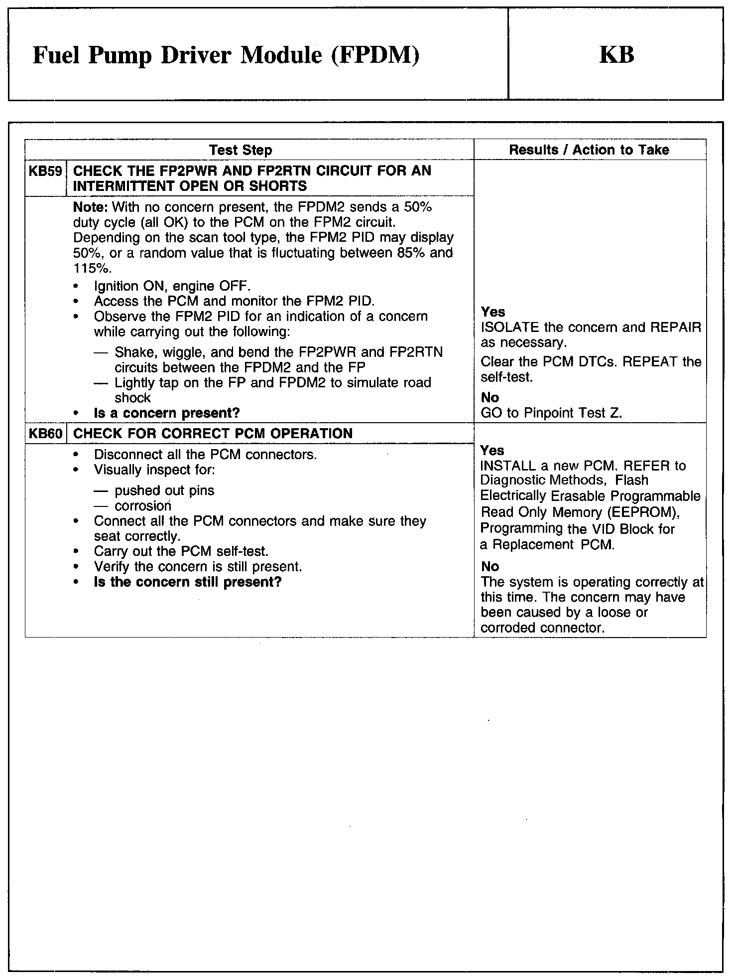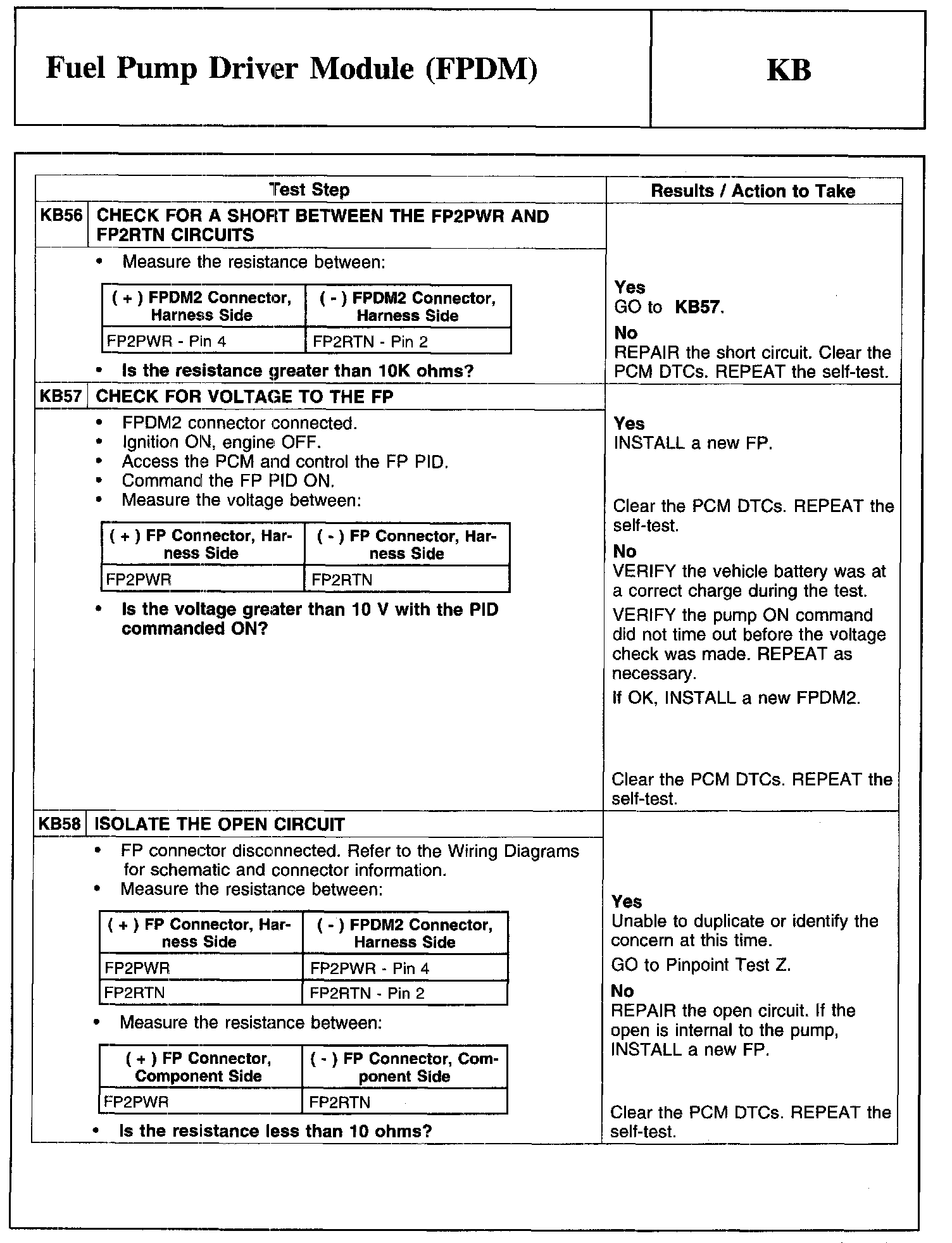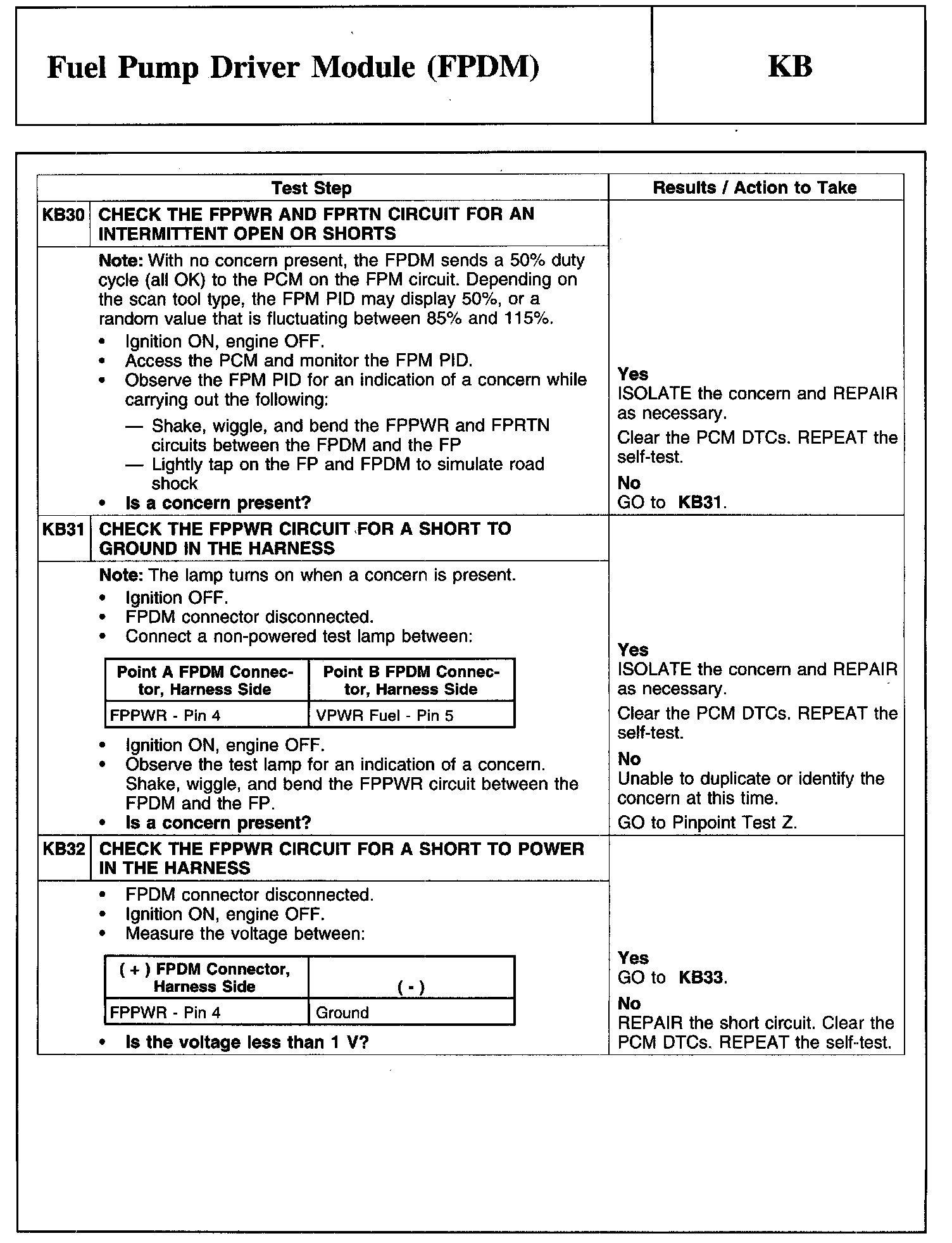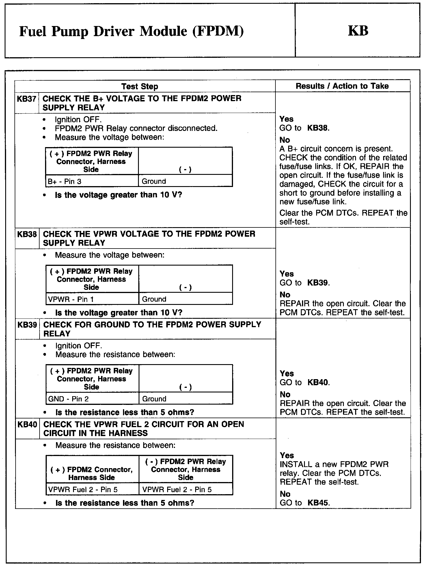 PINPOINT TEST KB: FUEL PUMP DRIVER MODULE (FPDM)Warning And Fuel Pump Driver Module (FPDM) Connector: