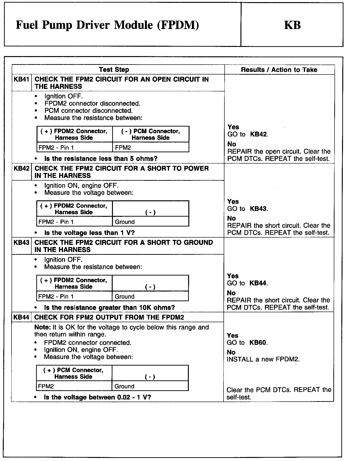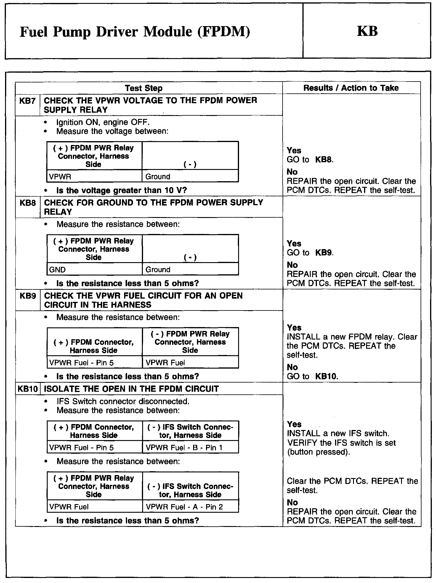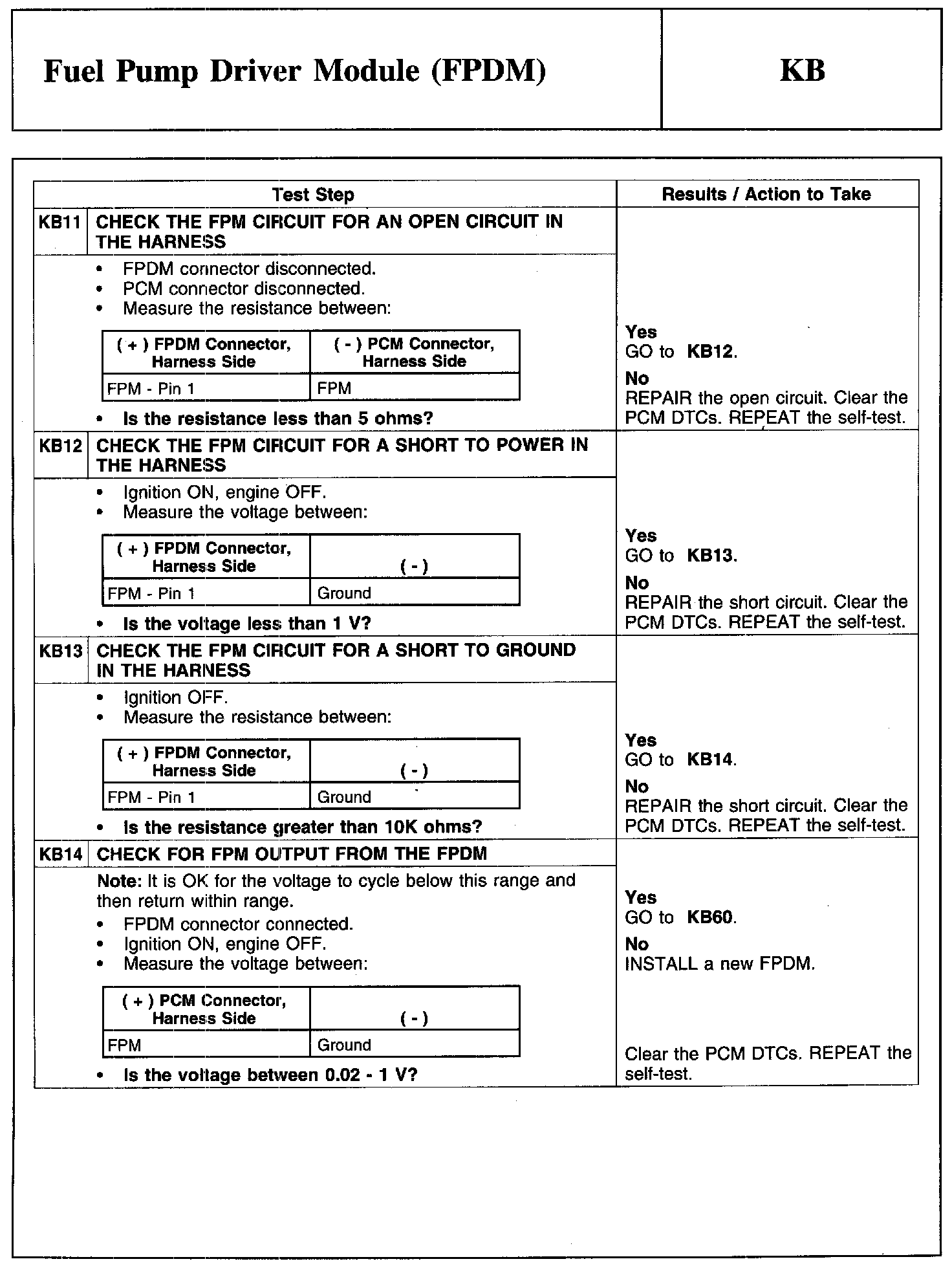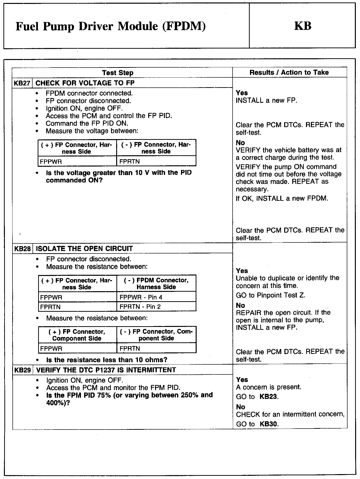 PINPOINT TEST KB: FUEL PUMP DRIVER MODULE (FPDM)Warning And Fuel Pump Driver Module (FPDM) Connector: